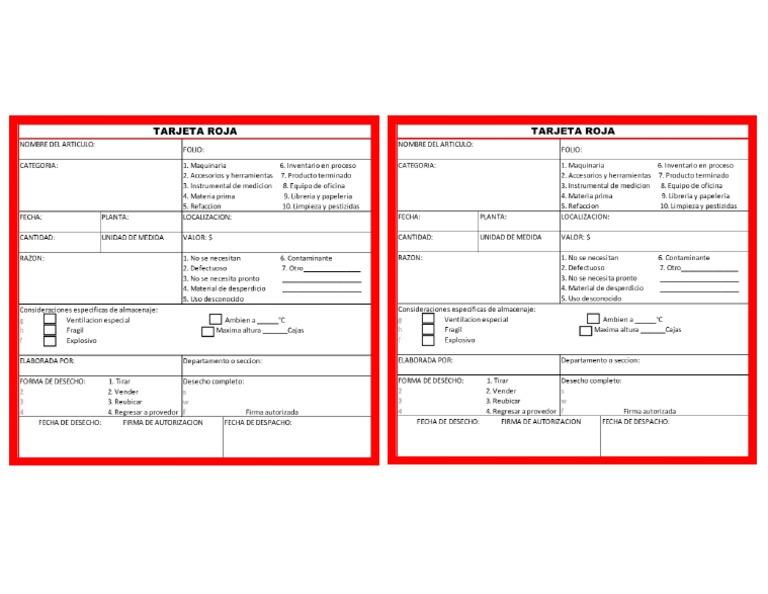 Source: 4.bp.blogspot.com El siguiente documento es un formato de tarjeta roja necesaria para la identificación de elementos innecesarios en la implementación y mantenimiento de la metodologÃa 5s.